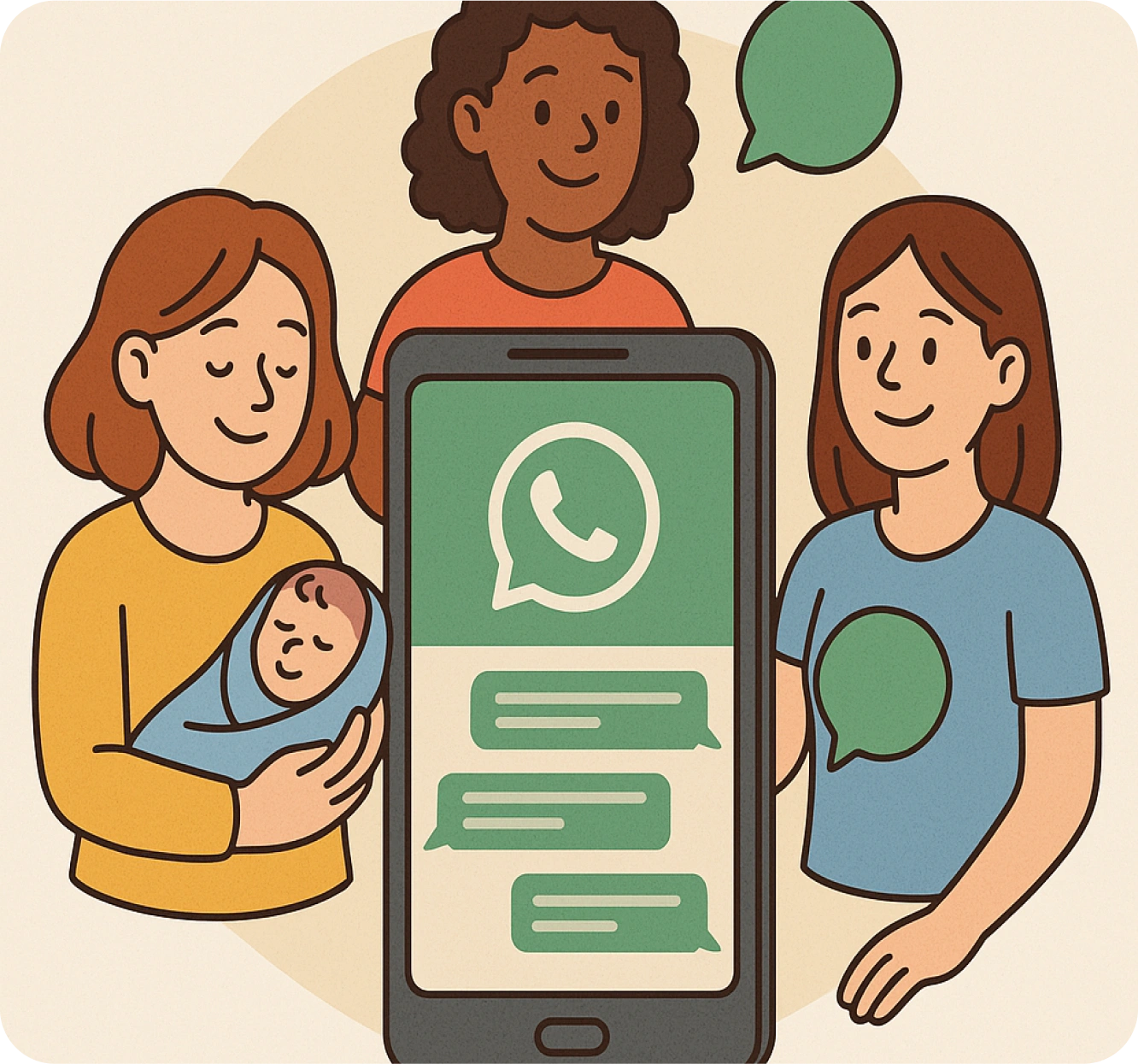 Um grupo acolhedor, sem julgamentos, onde mães trocam experiências e constroem, juntas, redes de apoio verdadeiras e duradouras.